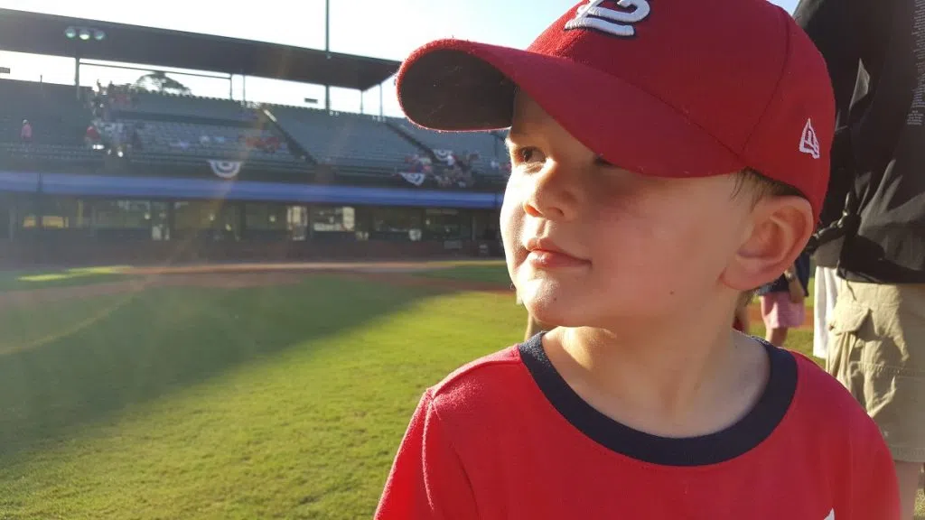 (Tyler enjoying his first time ever on the field of a professional baseball field!)