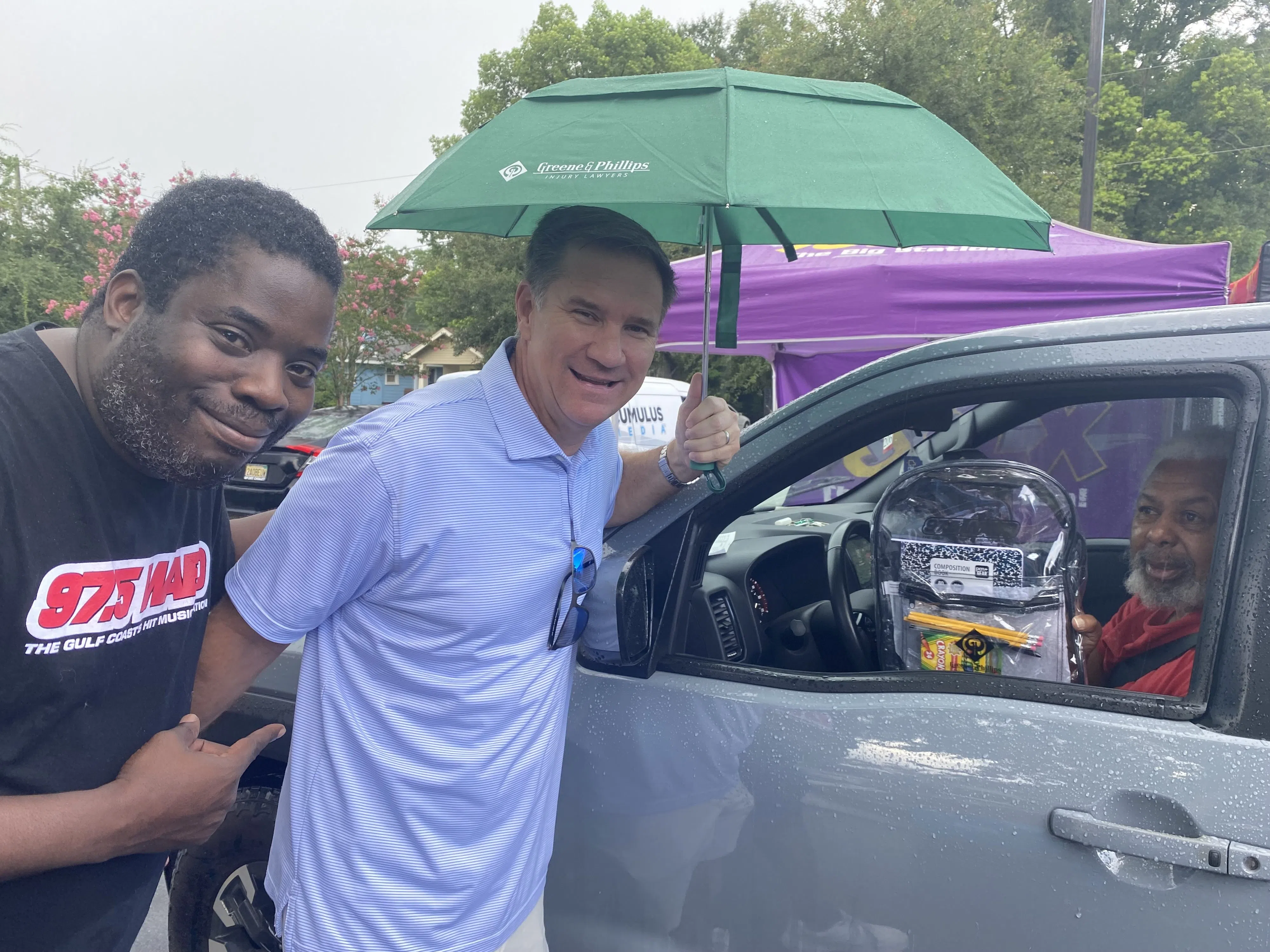 SATURDAY JULY 27TH, WE PARTNERED WITH GREENE & PHILLIPS – INJURY LAWYERS AND OUR SISTER STATIONS TO GIVE OUT BOOKBAGS AND SCHOOL SUPPLIES